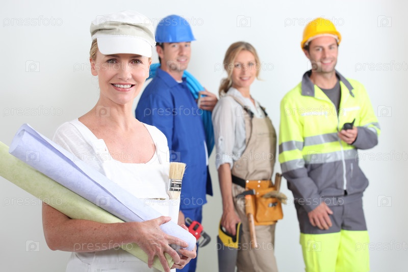 Рабочие с одним из них на переднем плане
