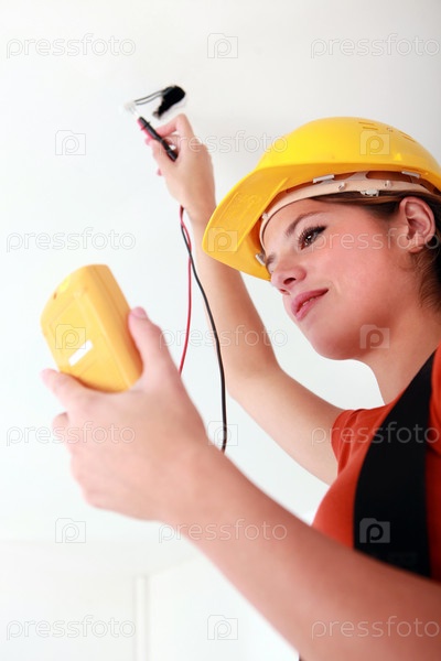 Женщина-электрик на работе