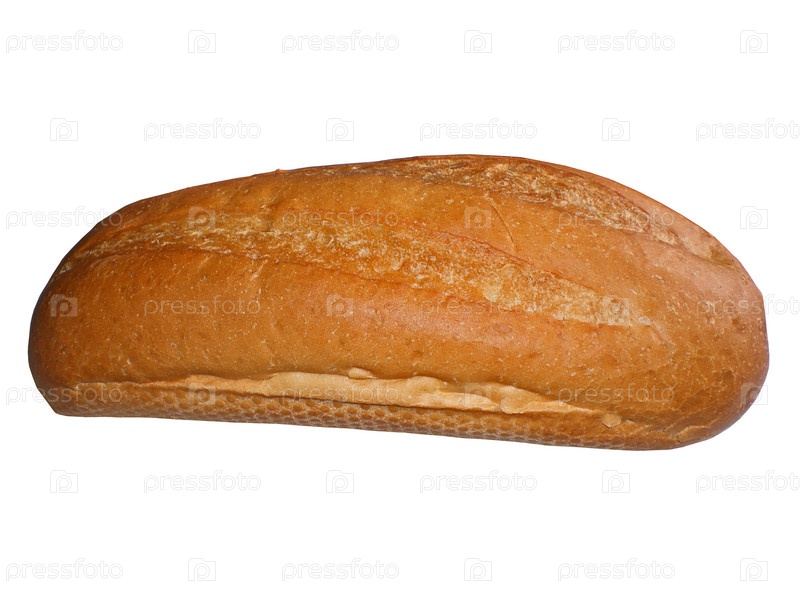 Батон белого свежего хлеба на белом фоне