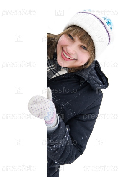 Девушка выглядывает из-за угла улыбаясь