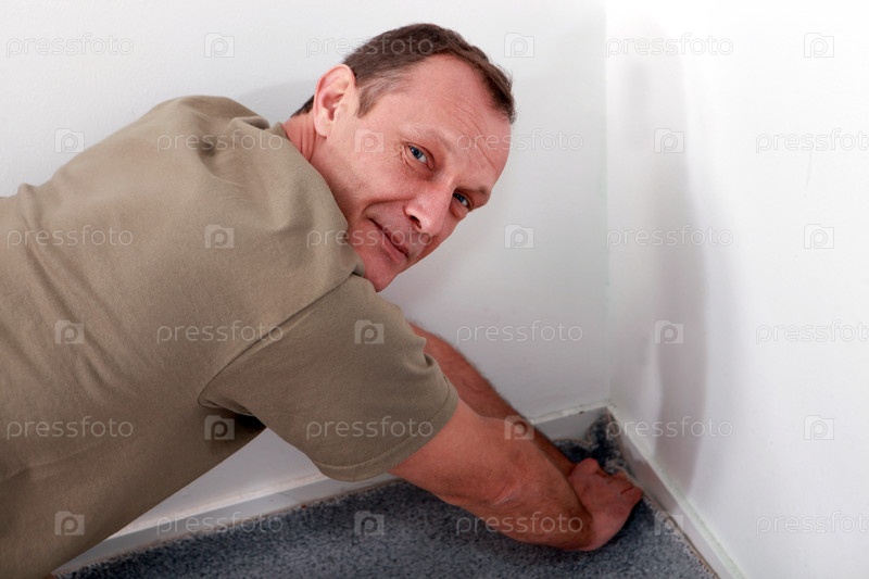Мужчина укладывает ковролин