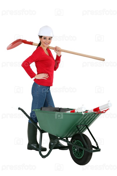 Женщина-строитель с тачкой