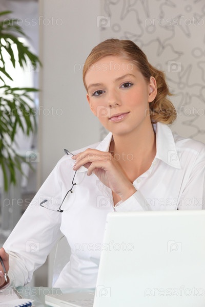 Секретарь перед ее ноутбуком