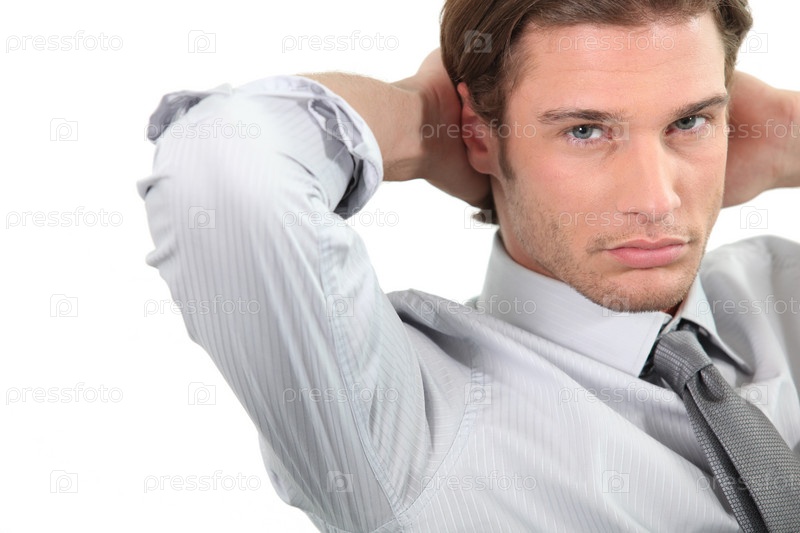 Молодой предприниматель с руками за головой