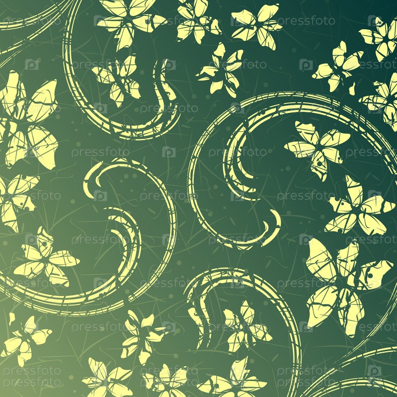 Цветочный узор в желто-зеленых тонах, фон, шаблон