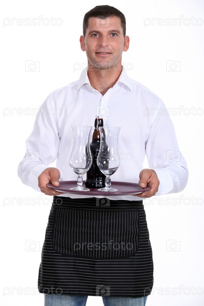 Официант с пивом на подносе