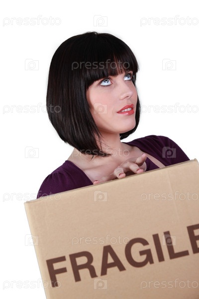 Девушка с картонной коробкой, студия