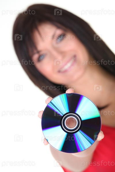 Молодая женщина, держащая компакт-диск