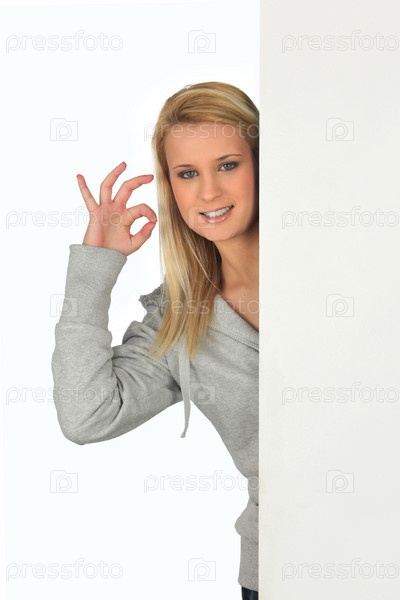 Молодая женщина показывает знак ОК