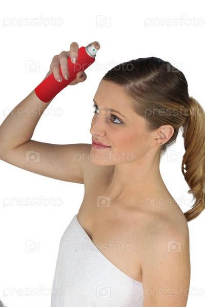 Молодая женщина с лаком для волос