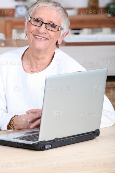 Пожилая женщина делает покупки в интернете
