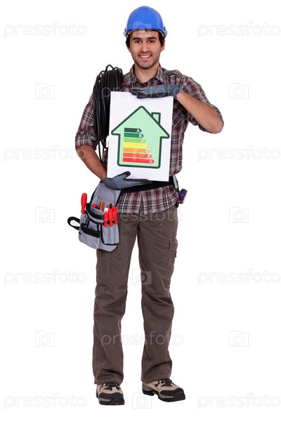 Мещрабочий держит диаграмму энергопотребления