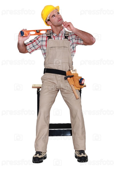 Задумчивый плотник с уровнем