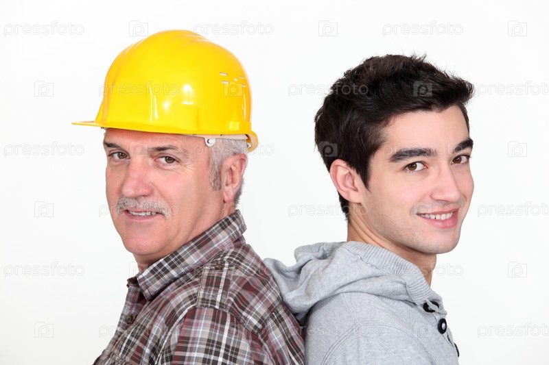 Строители стоят спина к спине