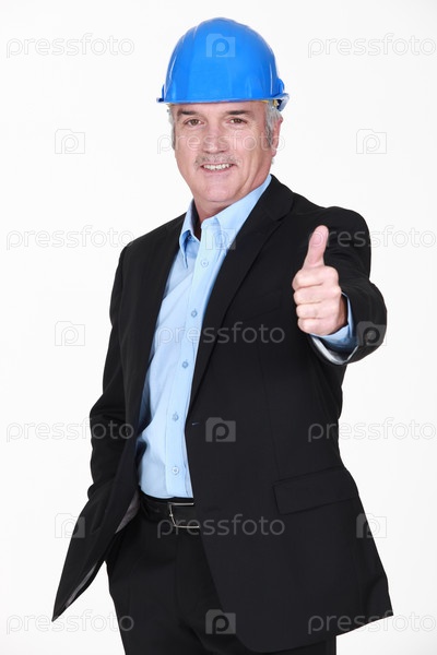 Пожилой архитектор с поднятым большим пальцем