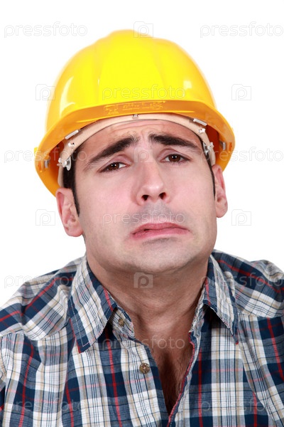 Строитель с грустной гримасой