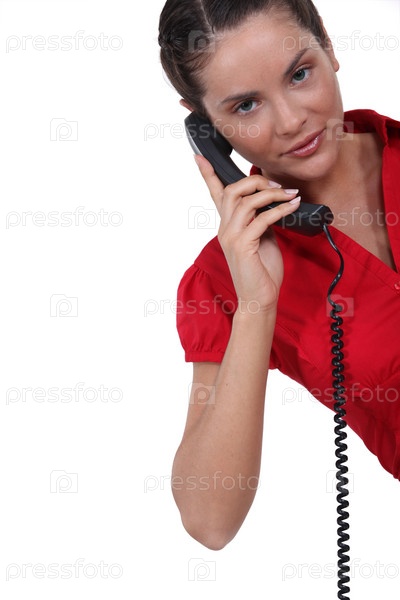 Молодая брюнетка с телефоном