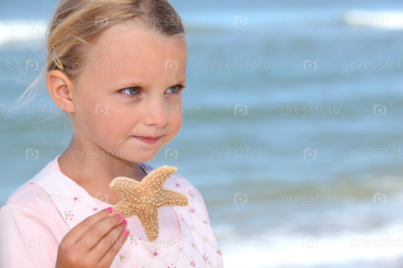 Девочка держит морскую звезду