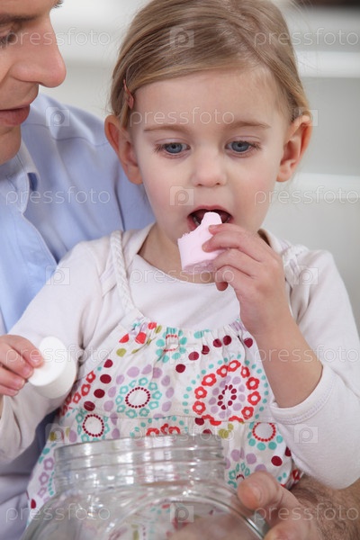 Маленькая девочка ест зефир