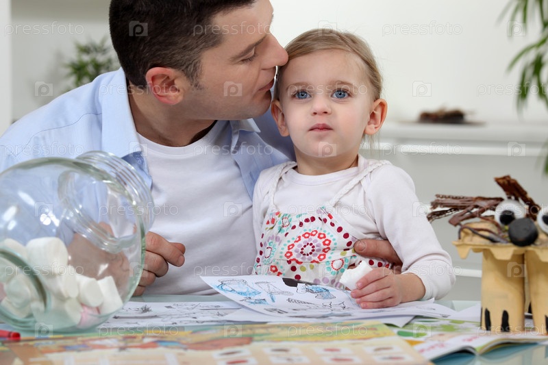 Мужчина целует дочь