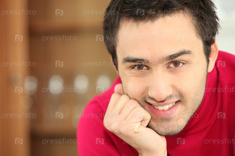 Мужчина опирается подбородком на руку