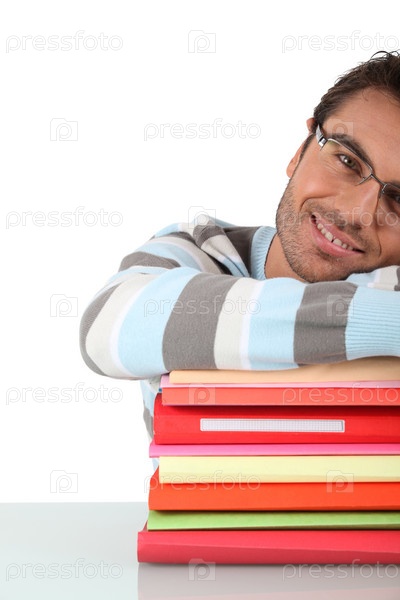 Улыбающийся человек с стопкой файлов
