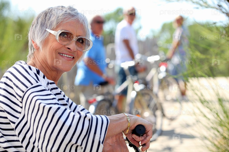 65-летняя женщина ездит на велосипеде с друзьями
