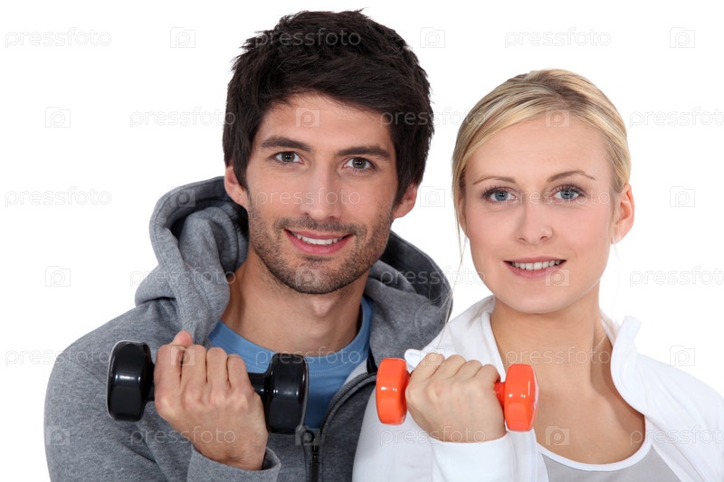 Пара поднимает гантели