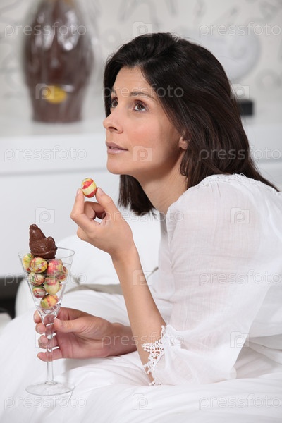 Женщина ест пасхальное яйцо