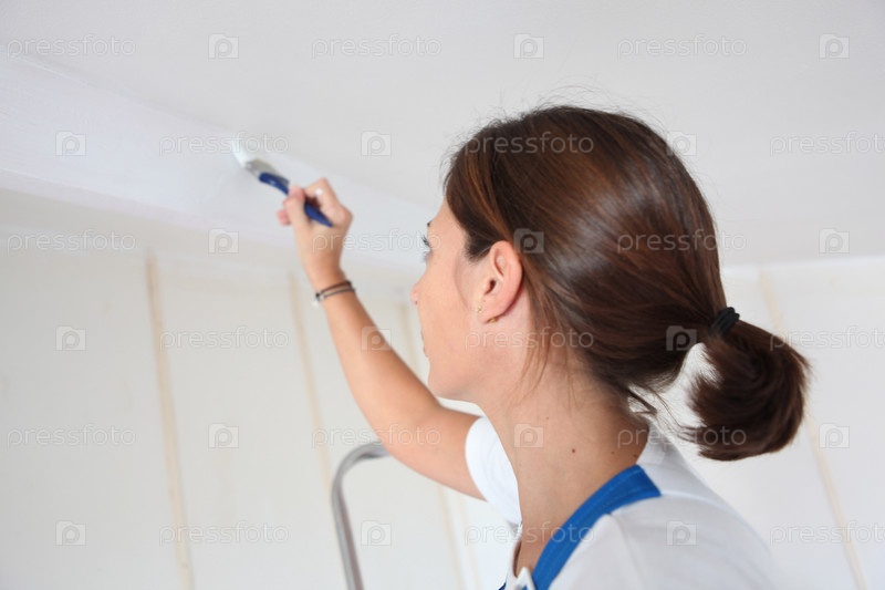 Женщина красит стену