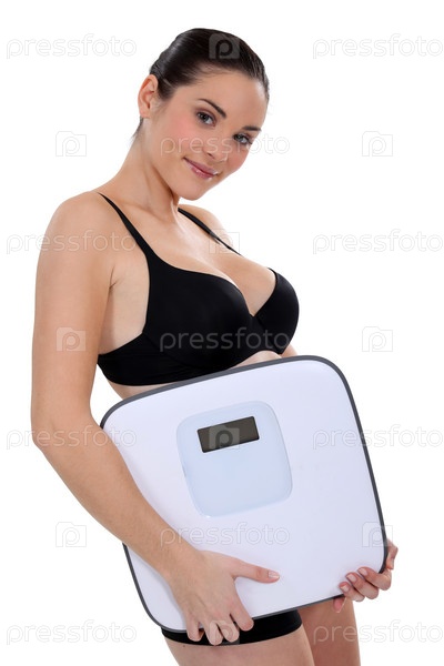 Девушка в нижнем белье с весами