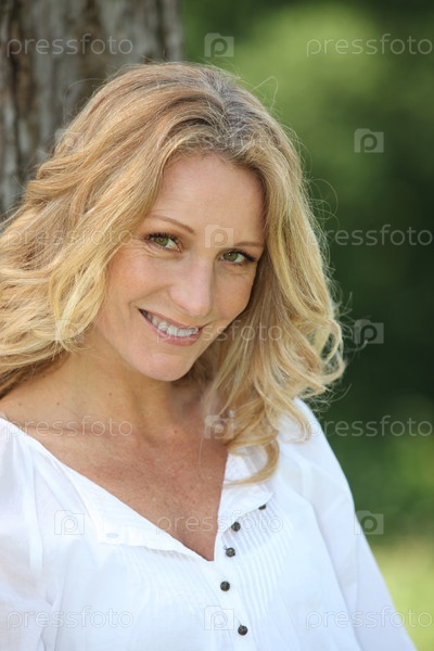 Красивая блондинка на фоне зелени