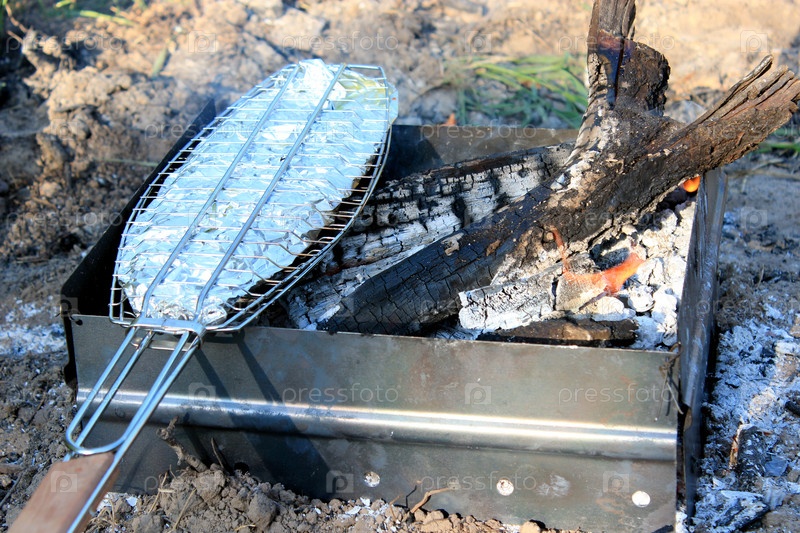 Блюда из жареной рыбы, приготовленное на огне