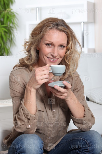 Женщина пьет чай