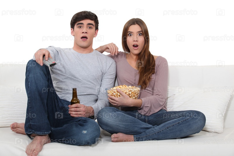 Пара смотрит фильмы ужасов