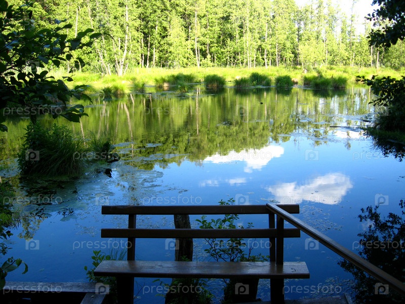 Скамейке возле живописного озера