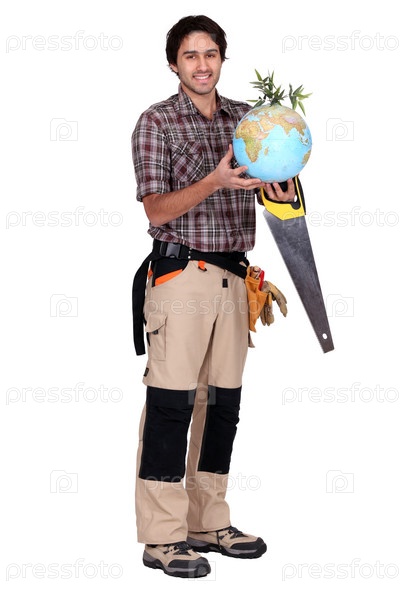 Рабочий с глобусом в руке