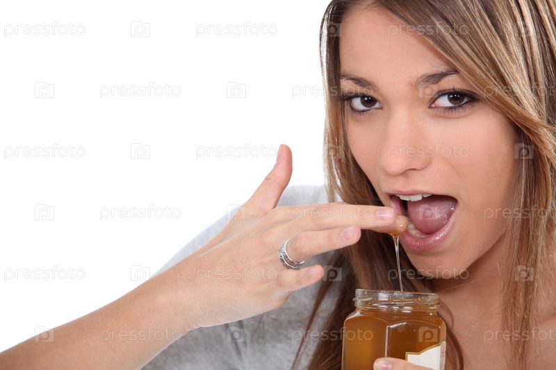 Женщина макает палец в джем