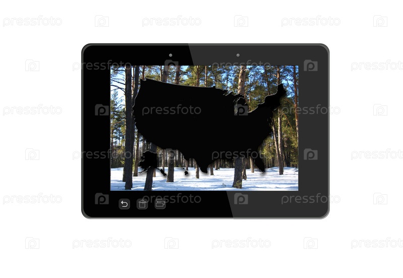 Иллюстрация, планшет с силуэтом карты США