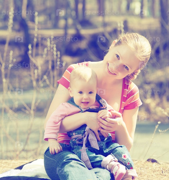 Счастливая семья. Мать и ребенок на прогулке в парке
