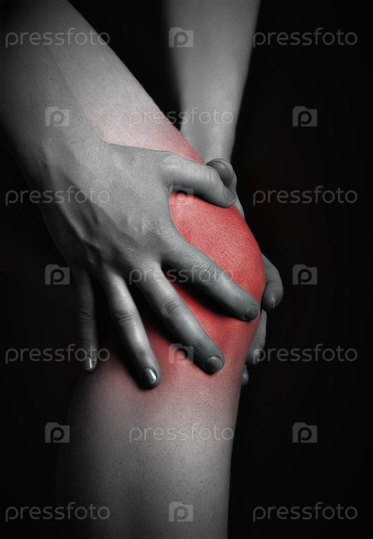 Боль в колене. Мануальный терапевт делает массаж в больном колене