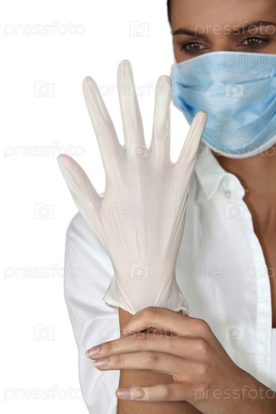 Доктор надевает резиновые перчатки