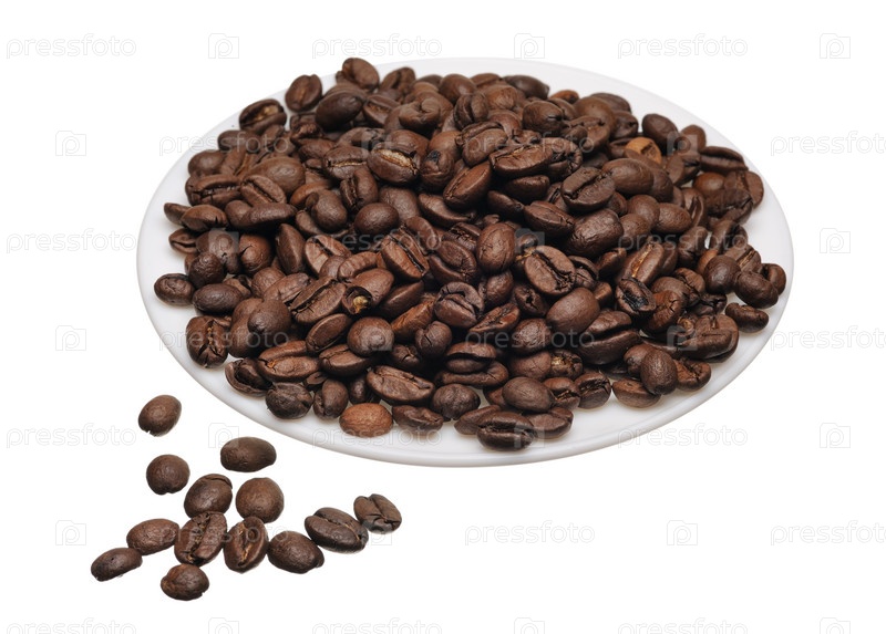 Белое блюдце с зернами кофе