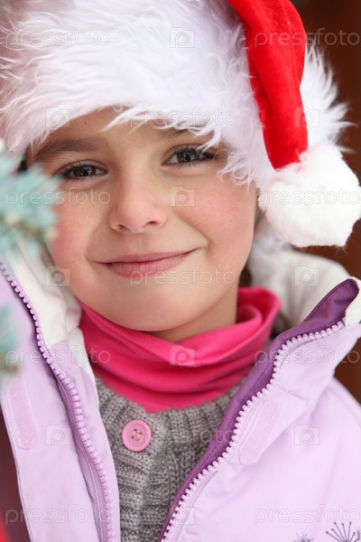 Маленькая девочка в колпаке Санты