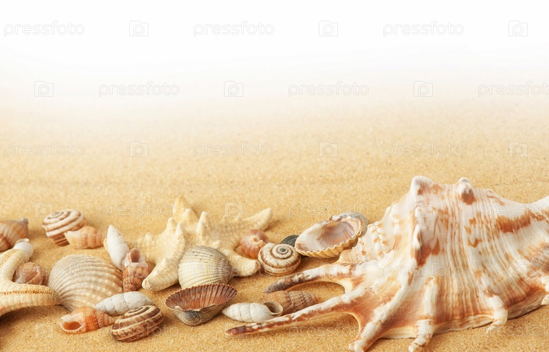 Раковины и морские звезды на песке
