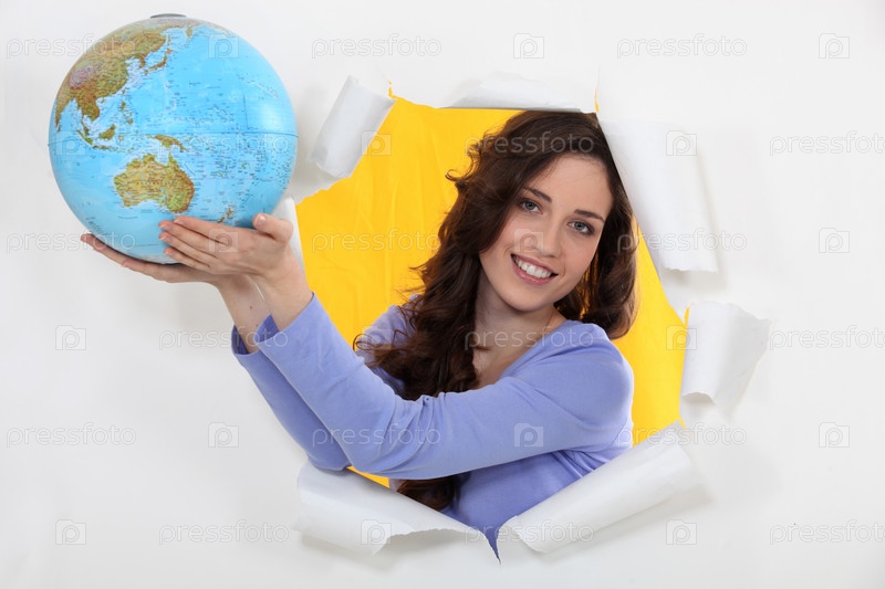 Женщина держит глобус