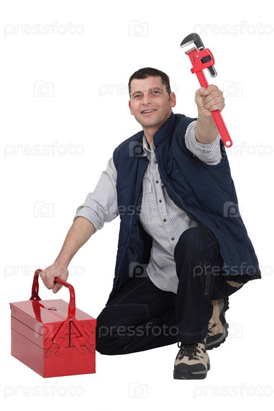 Рабочий с раздвижным гаечным ключом