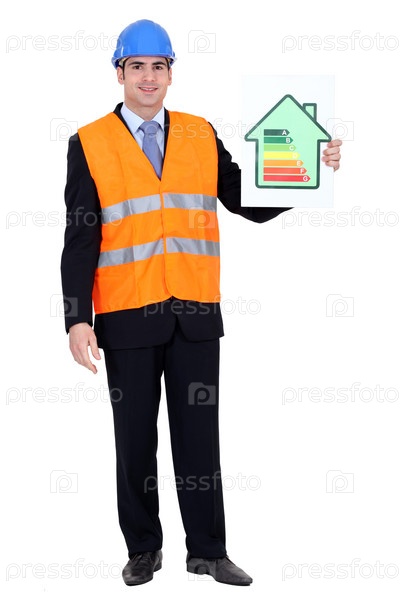 Инженер с диаграммой энергоэффективности