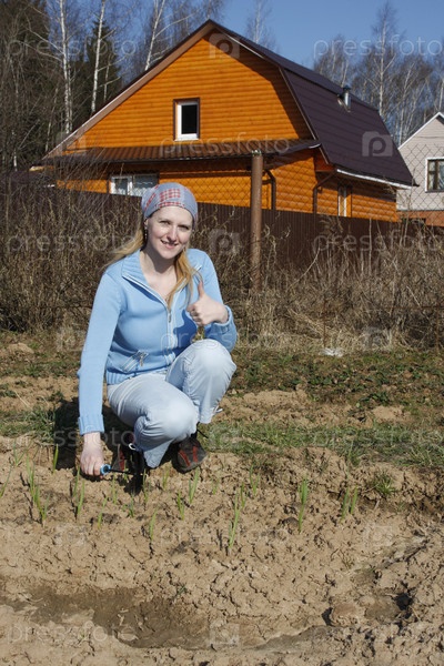 Девушка работает на грядке