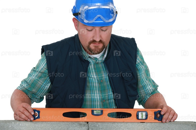 Каменщик проводит измерения